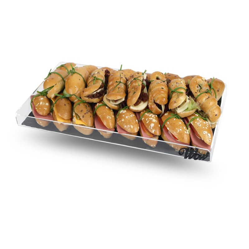 variety of white and brown mini sized sandwiches(consisting of turkey and cheddar cheese,mortedella,mozzarella cheese)