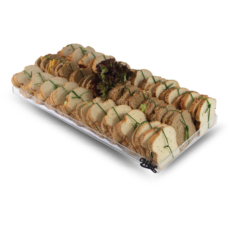 Blissful thirty-six pieces of white and brown toast sandwiches with your choice of four fillings from mortadella, feta, edam, cheddar, labneh and turkey cheese